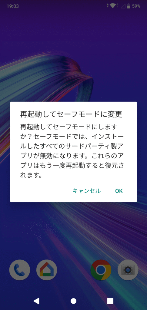 2.「再起動」を長押し→「セーフモードで再起動」を選択(機種によります)