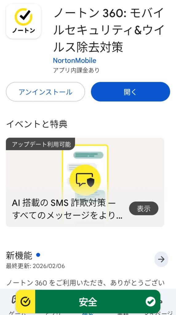 ノートンと検索すると、たくさんのアプリが出てきます。購入した商品の名前を確認してアプリをインストールしてください。特別な操作はありません。